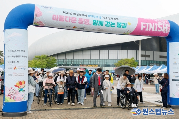 화성특례시의회(의장 배정수)는 20일 화성시종합경기타운 앞마당 일원에서 열린 「2026년 화성특례시 장애인의 날 기념 걷기축제 『아름다운 동행, 함께 걷는 봄길』」에 참석해 장애인과 비장애인이 함께하는 사회통합의 의미를 되새겼다.