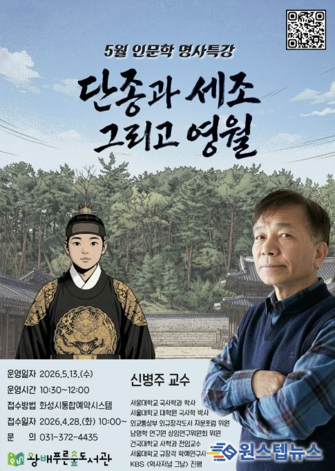 원스텝뉴스 천규영 기자 | 화성시문화관광재단 운영하는 왕배푸른숲도서관이 오는 5월 13일, 지역 주민들을 위해 역사학자 신병주 교수를 초청하여 5월 인문학 명사특강을 개최한다.