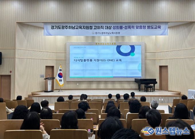 원스텝뉴스 이병희 기자 | 경기도광주하남교육지원청은 4월23일‘경기교육 디지털플랫폼 지원이(G-ONE) 역량강화를 위한 교육’을 미래교육 현장을 이끄는 교장·교감·행정실장을 대상으로 실시하여 현장업무에 AI기반 서비스를 적용한 교직원의 업무 효율성을 높인다.