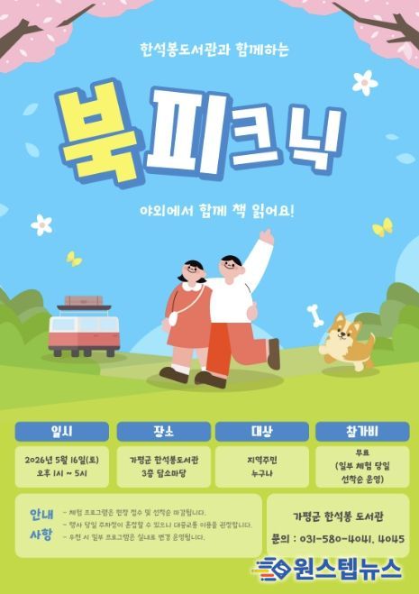 원스텝뉴스 천규영 기자 | 가평군은 5월 가정의 달을 맞아 오는 16일 한석봉도서관 3층 담소마당에서 ‘가족과 함께하는 북 피크닉’ 행사를 개최한다고 밝혔다.