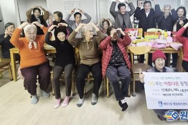 수원시 영통구 매탄2동 주민자치회, 연말맞이 한국1차아파트 경로당에 '손수 뜬 털모자와 후원 물품' 나눔