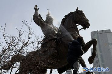 수원시 장안구, '우리공원 새빛 새단장' 새봄맞이 동상 세척 실시