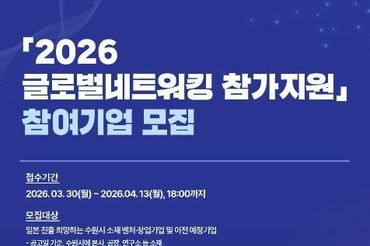 수원특례시, '2026 글로벌네트워킹 참가지원' 참여할 벤처·창업 기업 7개 사 모집
