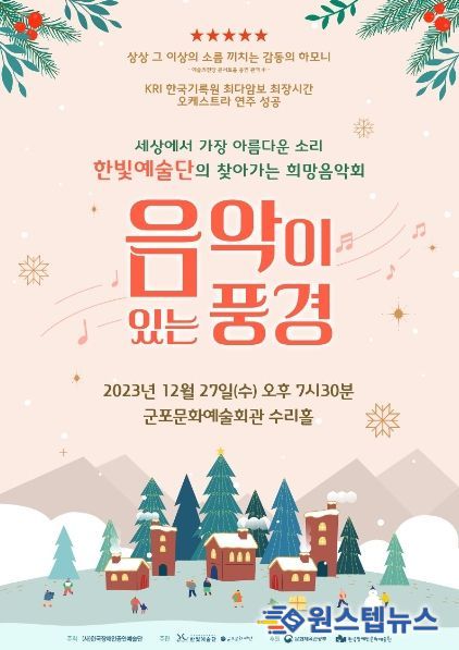 원스텝뉴스 천수호 기자 | 군포문화재단이 따뜻한 연말을 위하여, 12월 마지막 주 다채로운 음악 공연으로 찾아온다.