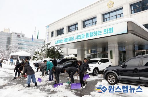 박준모 의장은 “시민들의 안전이 최우선이라고 생각해 오늘 제설작업에 나섰다”며, “폭설로 인한 시민들의 피해를 최소화하기 위해 의원들과 직원들이 한마음으로 힘을 모았다”고 전했다.
