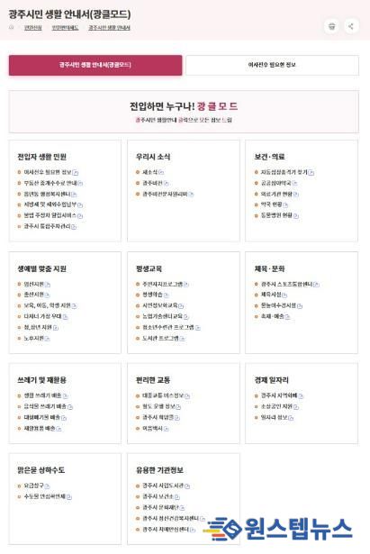 원스텝뉴스 이병희 기자 | 광주시는 시민 생활에 꼭 필요한 정보를 한눈에 확인할 수 있는 디지털 안내 서비스 ‘광클모드(광주시민 생활 안내 클릭으로 모두 드림)’를 시청 홈페이지에 새롭게 개설했다고 29일 밝혔다.
