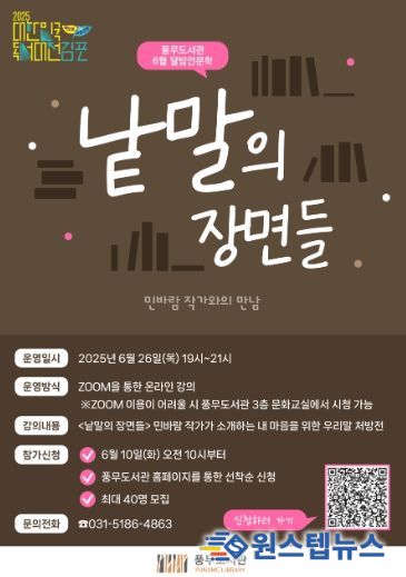 프로그램 참여 신청은 6월 10일 오전 10시부터 김포시 풍무도서관 홈페이지에서 선착순으로 접수한다.