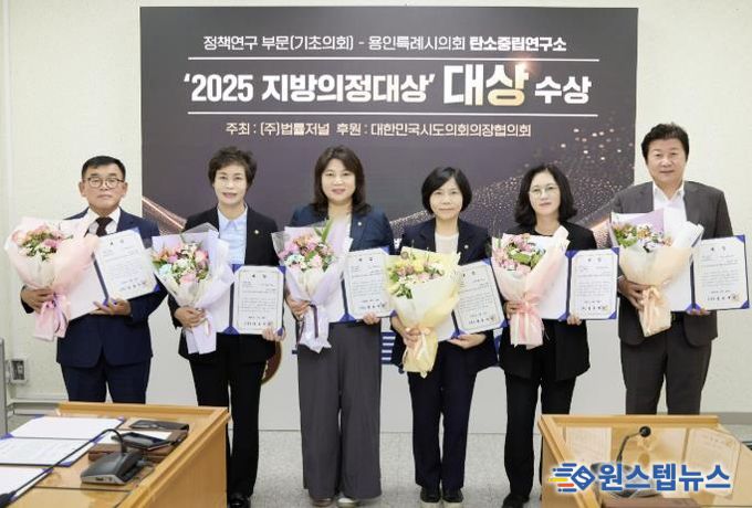 원스텝뉴스 이병희 기자 | 용인특례시의회 의원연구단체 ‘탄소중립연구소’가 법률저널 주최, 대한민국시도의회의장협의회 후원으로 열린 ‘2025 지방의정대상’에서 정책연구 기초의회 부문 대상을 수상했다.