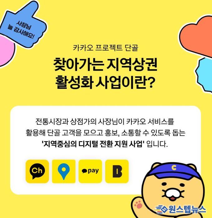 이번 사업은 카카오톡 채널과 카카오맵, 카카오스토어, 예약하기 등 다양한 디지털 서비스를 활용해 상인들이 단골 고객을 확보하고 소통을 강화할 수 있도록 돕는 사업이다.