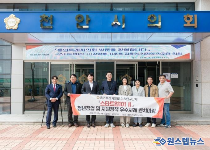 원스텝뉴스 이병희 기자 | 용인특례시의회 의원연구단체 ‘스타트업101 Ⅱ’는 22일부터 23일까지 이틀간 충청남도 천안시를 방문해 청년창업 및 청년지원 정책 우수사례를 벤치마킹하는 현장 활동을 진행했다.