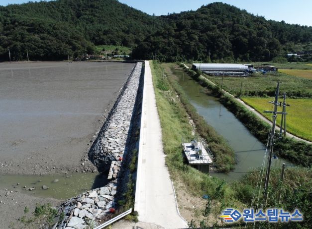 이에 따라 군은 2023년 10월 사업에 착공해 총사업비 19억 3천만 원(국비 50%, 도비 10%, 군비 40%)을 투입해 ▲압사석 및 파라펫 보강 228m ▲제방 포장 228m ▲그라우팅 229공 ▲배수갑문 전동화 1개소 등을 정비 완료했다.