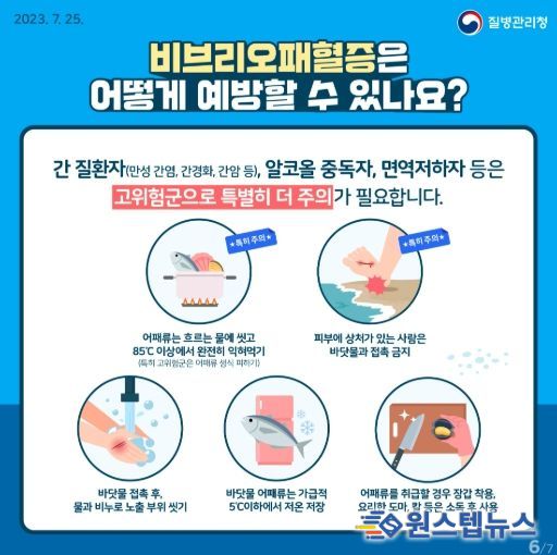 원스텝뉴스 이병희 기자 | 이천시는 최근 비브리오패혈증으로 인한 사망사례가 급증함에 따라, 시민들에게 어패류 생식 자제 및 손 씻기 등 일상 속 위생 수칙 준수를 강력히 당부했다.