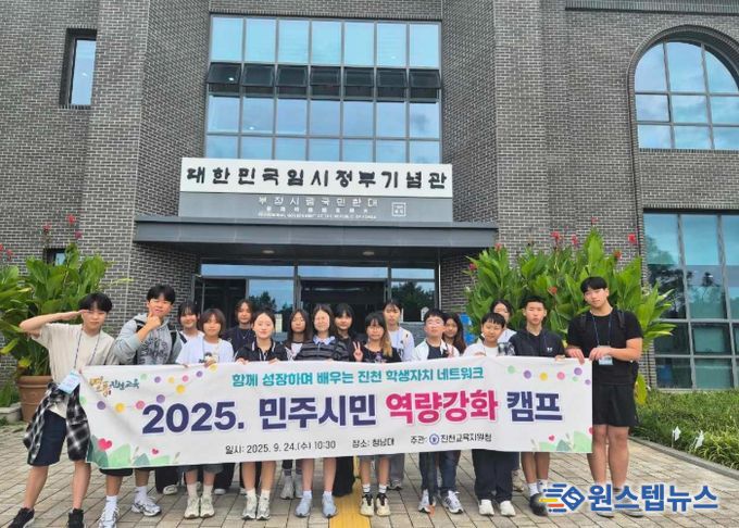원스텝뉴스 이병희 기자 | 충청북도진천교육지원청은 24일 청남대에서 진천 관내 초·중학교 학생자치회 대표 20여 명이 참여한 가운데 '2025. 민주시민 역량강화 캠프'를 개최했다.
