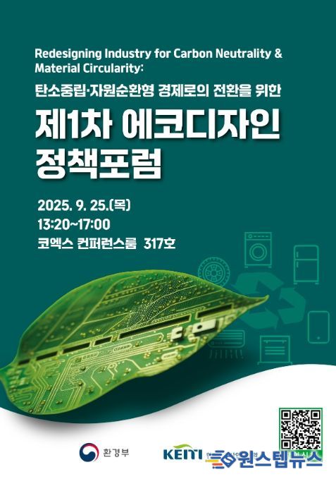 원스텝뉴스 이병희 기자 | 환경부와 한국환경산업기술원은 9월 25일 코엑스(서울 강남구 소재)에서 ‘제1차 에코디자인 정책포럼’을 개최한다.