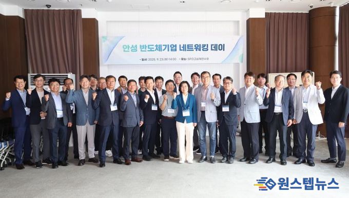 원스텝뉴스 천규영 기자 | 안성시는 2025년 9월 23일 오후 2시, 고삼재연수원에서 “안성 반도체기업 네트워킹 데이”를 개최했다. 이날 행사에는 김보라 안성시장과 SK하이닉스, 케이씨텍, 미코그룹, 티씨케이 등 주요 반도체기업 임원진, 지역대학 교수진이 참석해 반도체산업 발전 방향과 협력 방안을 논의했다.