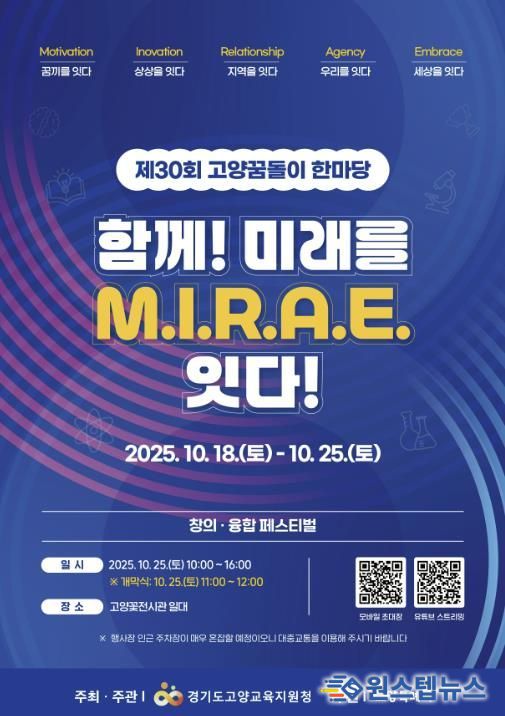이현숙 교육장은 “고양꿈돌이 한마당은 지난 30년간 학생, 학부모, 교사, 지역사회가 함께 만들어온 고양 대표 교육 축제”라며 “앞으로도 학생들의 꿈꾸고 도전하는 리더로서 자기주도성과 혁신적 상상력, 나아가 세상을 향한 포용성을 키워가는 장이 되길 바란다”고 말했다.