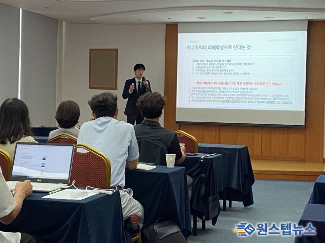 연수는 ▲학교폭력(한상훈 변호사) ▲성희롱·성폭력 예방(권송자 전문강사) ▲학생맞춤통합지원(윤경희 선도학교 교감)의 세 가지 핵심 주제로 진행됐다. 각 분야 전문가들은 최신 판례와 실제 사례, 선도학교 운영 노하우 등을 공유하며 관리자의 실질적인 대응 역량을 강화하는 데 집중했다.