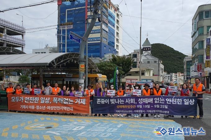원스텝뉴스 이병희 기자 | 거제가정상담센터(센터장 임귀숙)는 지난 9월 23일 ‘성매매추방주간(9.19~9.25)’을 맞아 거제시청, 거제경찰서, 거제소방서 의용소방대, 시민 자원봉사자 등 30여 명과 함께 민·관·경 합동 거리 캠페인을 진행했다.