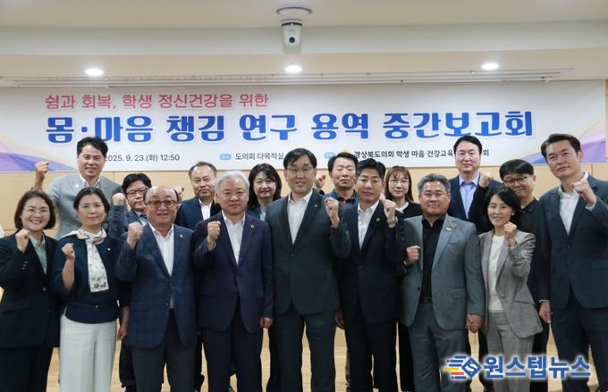 원스텝뉴스 이병희 기자 | 경북도의회 의원연구모임'경상북도 학생마음 건강교육 정책연구회'(대표 황두영 의원)는 23일(화) 도의회 다목적실에서 '쉼과 회복, 학생 정신건강을 위한 몸·마음 챙김 연구' 중간보고회를 개최했다.