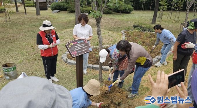 원스텝뉴스 이병희 기자 | 포항시는 24일 송도 솔밭 도시숲 내 공한지를 활용해 ‘장미아카데미 기념 화단’을 조성했다.