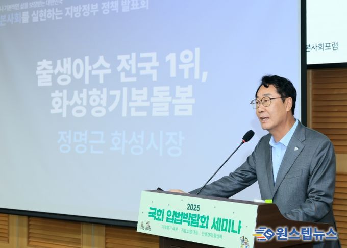 정명근 화성특례시장은 24일 국회에서 열린 ‘기본사회 실현을 위한 지방정부 정책 발표회’에 참석해, 출생아 수 2년 연속 전국 1위 기록의 밑바탕이 된 ‘화성형 기본돌봄 정책’을 직접 소개했다.
