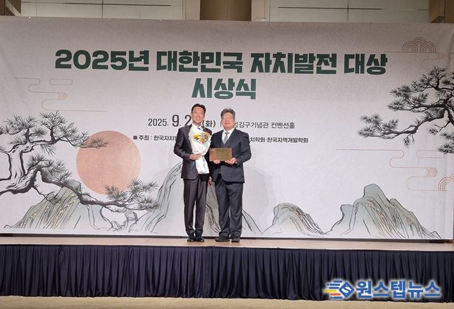 '대한민국 자치발전 대상'은 한국자치발전연구원이 주관하며, 지방자치 발전과 주민 삶의 질 향상에 기여한 국회의원, 지방의원, 공직자, 민간단체 등을 선정해 시상하는 상이다.