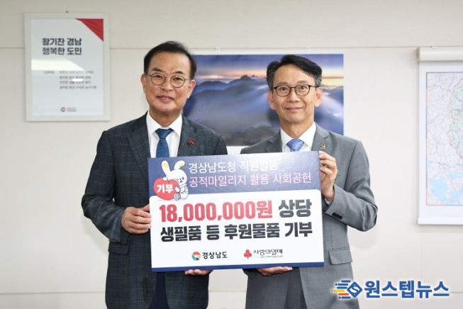 원스텝뉴스 이병희 기자 | 경상남도는 도내 취약계층에 따뜻한 명절의 정을 나누기 위해 24일 도청에서 ‘추석맞이 공적 항공마일리지 활용 기부물품 전달식’을 열었다.