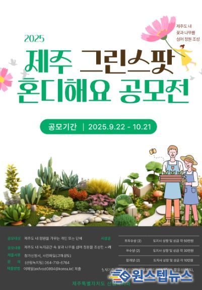 원스텝뉴스 이병희 기자 | 제주특별자치도는 도민들이 직접 가꾼 정원을 소개하고 공유하는 「제주 그린스팟 ᄒᆞᆫ디(함께)해요'사진 공모전을 개최한다.