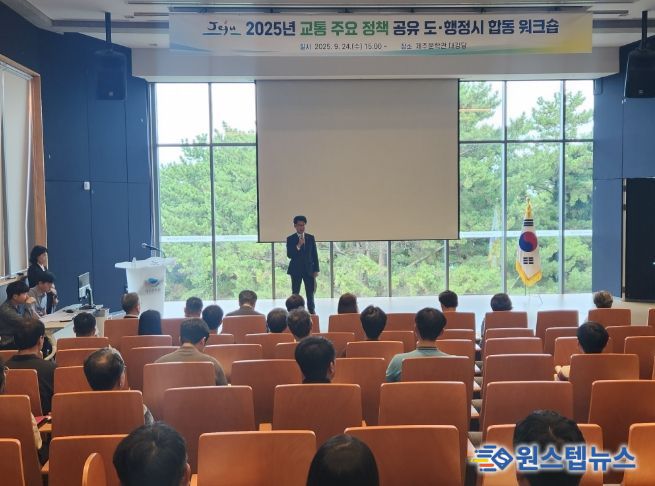 원스텝뉴스 이병희 기자 | 제주특별자치도가 24일 오후 3시 제주문학관 대강당에서 제주도와 행정시 합동으로 ‘2025년 교통 주요 정책 공유 워크숍’을 열고 교통정책 협력체계를 강화하는 자리를 마련했다.