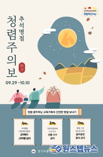 원스텝뉴스 이병희 기자 | 경기도광주하남교육지원청은 일상 속 청렴 실천 캠페인인 ‘청렴파인Day’ 활동의 일환으로 추석 명절을 맞아 청렴주의보를 발령하고, 공직기강 확립을 위한 다양한 청렴문화 활동을 전개한다.