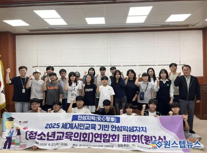 원스텝뉴스 이병희 기자 | 경기도안성교육지원청은 2025년 9월 27일 오후 1시, 교육지원청 별관 대회의실에서“안성의 빛나는 리더들”을 주제로 2025 안성학생자치(청소년교육의회)연합회 폐회(원)식을 성황리에 개최했다.