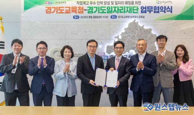 원스텝뉴스 이병희 기자 | 경기도교육청이 30일 남부청사에서 경기도일자리재단과 도내 직업계고 학생의 성공적 사회 진출 및 일자리 창출을 위한 업무 협약을 체결했다.