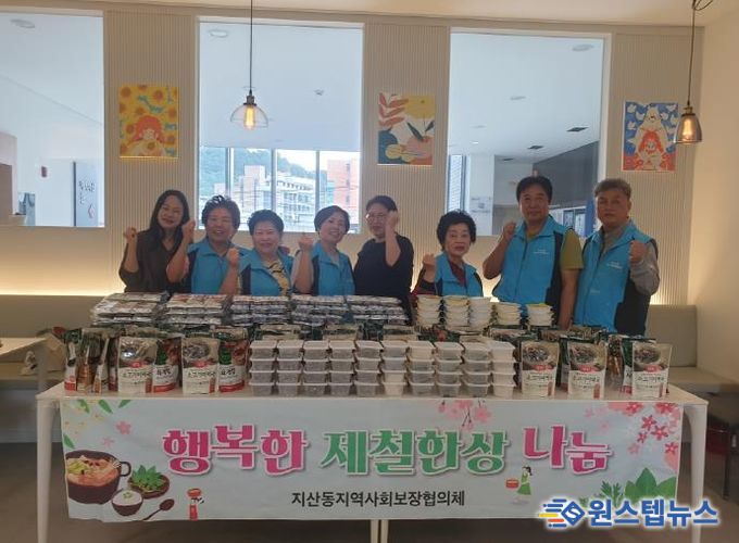 ‘행복한 제철한상 나눔’사업은 지산동지역사회보장협의체의 특화사업으로 여러 가지 문제로 취식에 어려움을 겪는 분들에게 직접 만든 반찬과 오래두고 먹을수 있는 여러가지 밀키트 꾸러미를 전달하는 사업이다.