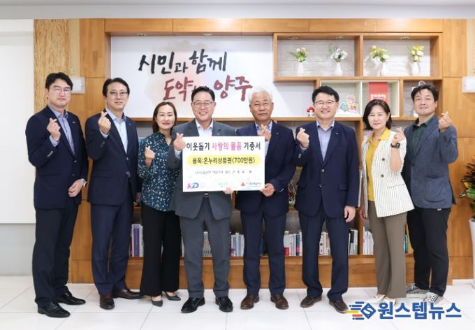 원스텝뉴스 이병희 기자 | 양주시가 지난 30일 ㈜진명여객(대표 허상준)에서 온누리상품권(1만원) 700매를 기탁받았다.