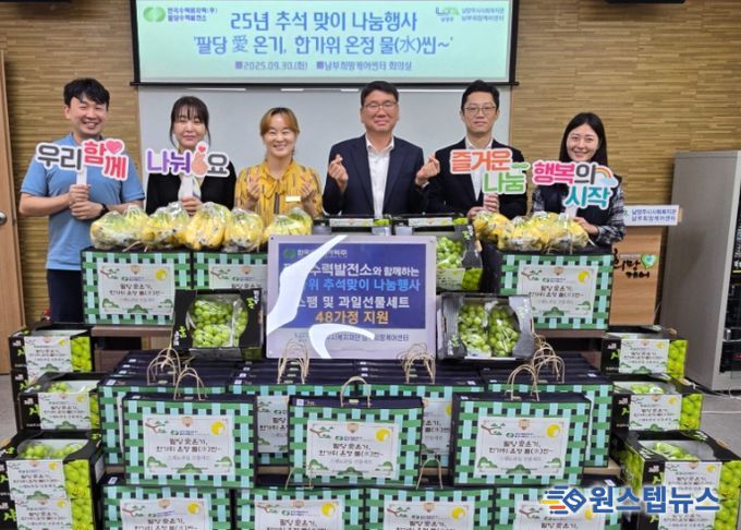 원스텝뉴스 이병희 기자 | 남양주시는 9월 30일 남부희망케어센터가 한국수력원자력(주)팔당수력발전소의 후원을 받아 ‘팔당愛 온기, 한가위 온정 물(水)씬~’이라는 이름으로 2025년 추석 명절맞이 나눔행사를 진행했다고 밝혔다.