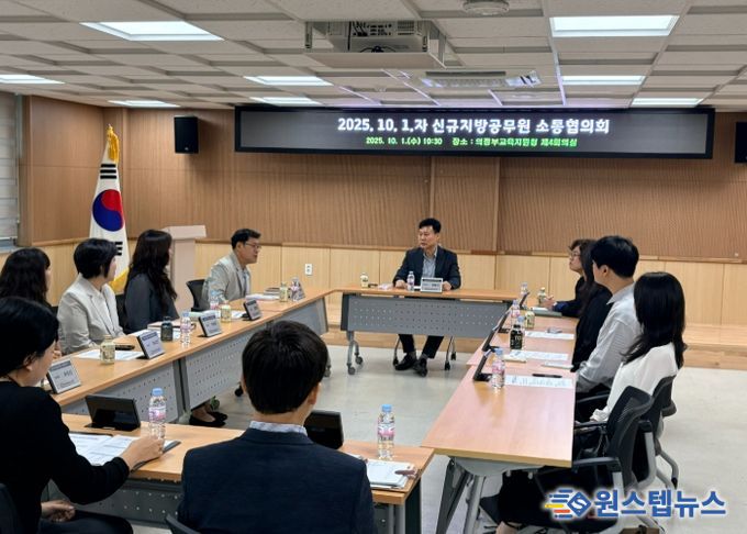 원스텝뉴스 이병희 기자 | 의정부교육지원청은 2025년 10월 1일 신규 임용 공무원의 첫 출발을 축하하는 발령장 수여식을 개최하고, 신규공무원의 안정적인 공직 적응과 장기근속 의욕 제고를 위해 ‘신규공무원 소통협의회’를 열어 공직 안착 지원 패키지 '어서5公(어서오공)' 추진 계획을 공유했다고 밝혔다.