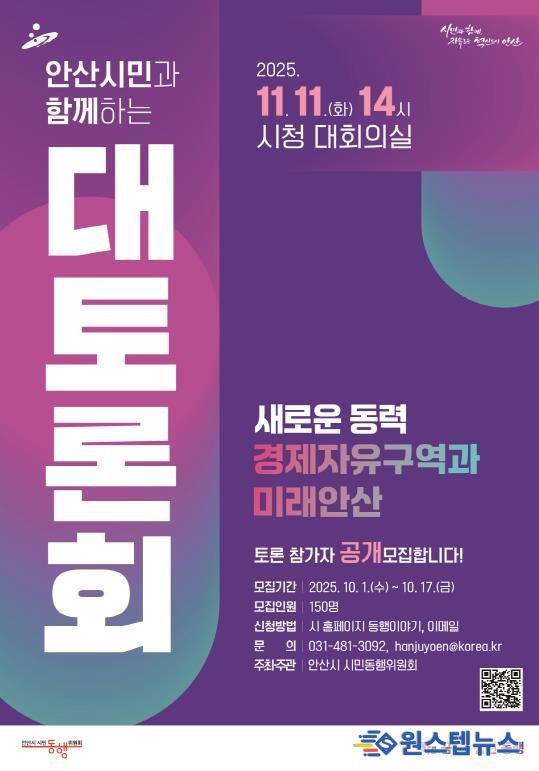 원스텝뉴스 이병희 기자 | 안산시 시민동행위원회는 오는 17일까지 ‘안산시민과 함께하는 대토론회’ 참가자를 모집한다고 2일 밝혔다.
