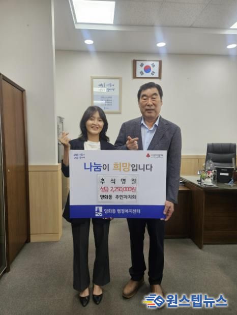 원스텝뉴스 이병희 기자 | 수원시 장안구 영화동 주민자치회는 지난 1일, 추석 명절을 앞두고 관내 도움이 필요한 이웃들을 위해 성금 225만원을 기부했다고 밝혔다.