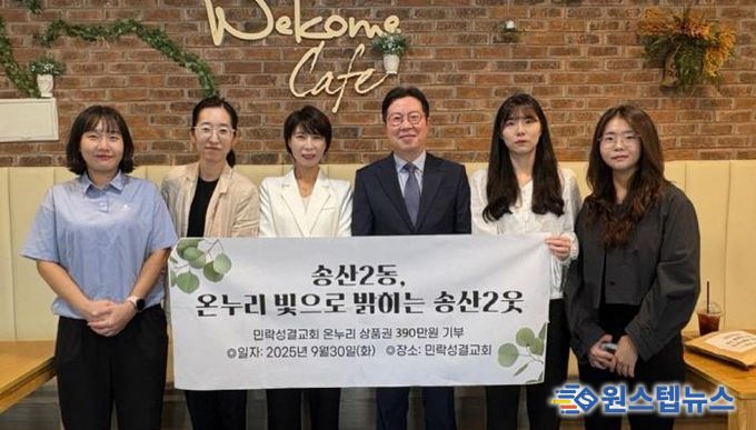 원스텝뉴스 이병희 기자 | 의정부시 송산2동주민센터는 9월 30일 민락성결교회가 지역 내 어려운 이웃을 위해 온누리상품권 390만원을 기부했다고 밝혔다.