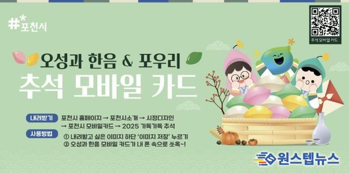 원스텝뉴스 이병희 기자 | 포천시는 지난 1일 민족 최대 명절 추석을 맞아 시민들이 감사와 따뜻한 마음을 손쉽게 전할 수 있도록 ‘추석 모바일 카드’를 무료 배포했다.