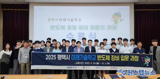 원스텝뉴스 이병희 기자 | 평택시는 지난 1일 ‘2025년 미래기술학교 장비 입문 과정’ 수료식을 열고 총 19명의 수료생을 배출했다. 이번 교육은 관내 특성화고와 마이스터고 3학년 가운데 반도체 기업 취업을 희망하는 학생들을 대상으로 운영된 것이 특징이다.