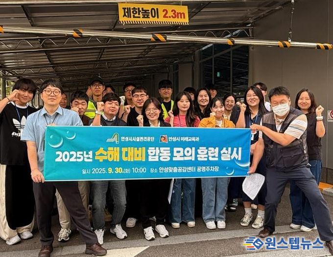 원스텝뉴스 이병희 기자 | 안성시시설관리공단은 지난 30일 오전10시 안성 맞춤공감센터 공영주차장에서, 안성시 미래교육과 청소년팀과 국지성 집중 호우 등 자연재해로부터 시설과 인명을 보호하기 위한 2025년 수해대비 합동 모의 훈련을 실시했다고 밝혔다.