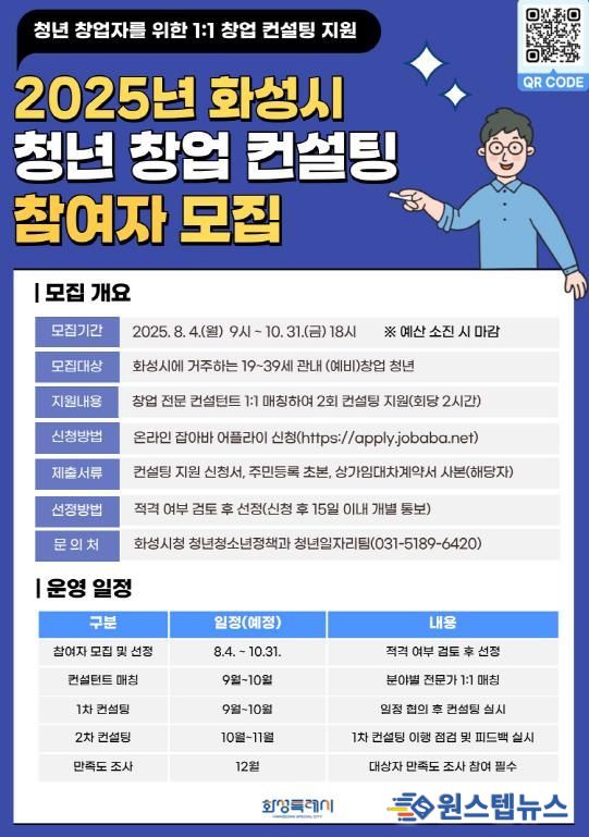 원스텝뉴스 이병희 기자 | 화성특례시가 오는 31일까지 ‘2025년 청년 창업 컨설팅 지원사업’ 참여자를 모집한다.