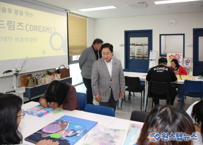 이날 주광덕 시장은 다산동에 위치한 드림즈 장애인보호작업장과 진건읍 송능리에 위치한 남양주 시니어클럽 공동작업장을 방문해 노인·장애인 근로자들을 격려하고 소통하는 시간을 가졌다.