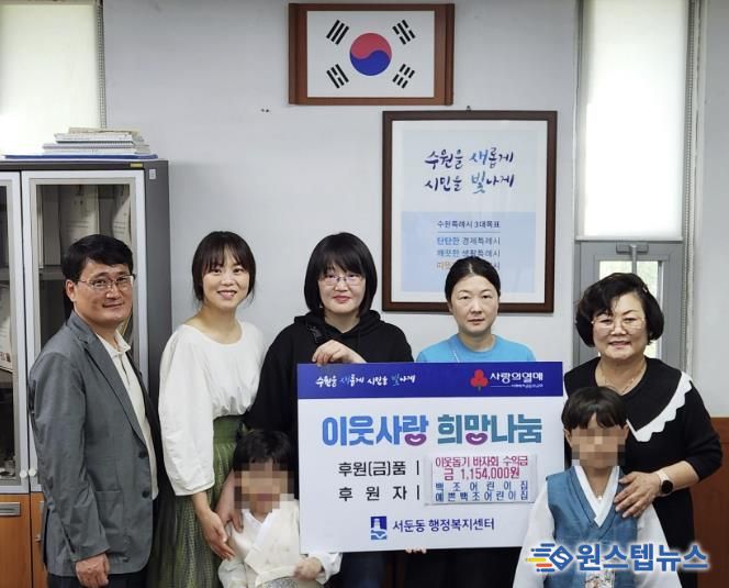 원스텝뉴스 이병희 기자 | 수원시 권선구 서둔동에 위치한 백조어린이집 및 예쁜백조어린이집은 지난 2일, 지역사회 내 어려운 이웃과 소외계층을 위해 어린이집 체험활동 수익금 1,154,000원을 서둔동행정복지센터에 기부했다.