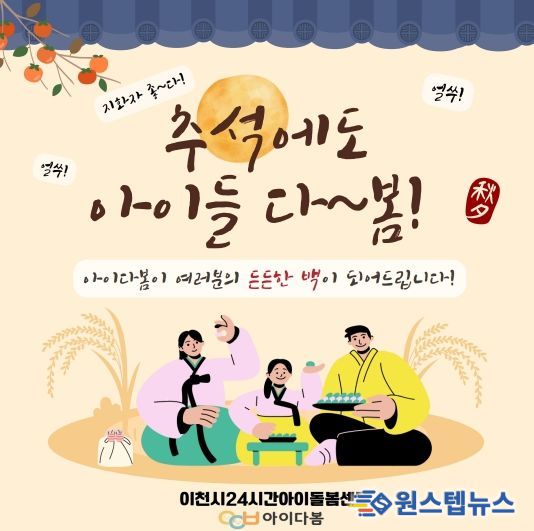 원스텝뉴스 이병희 기자 | 이천시는 추석 연휴 기간에도 이천시 24시간 아이돌봄센터인 ‘아이다봄’을 365일 24시간 정상 운영해 연휴 중 발생할 수 있는 돌봄 공백을 최소화한다고 밝혔다.
