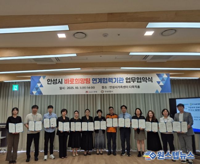 원스텝뉴스 이병희 기자 | 안성시는 지난 10월 1일 안성시가족센터 다목적홀에서 가정폭력․성폭력 등 112신고 피해자에 대한 ‘원스톱 통합지원’을 위하여 업무협약(MOU)을 체결했다.