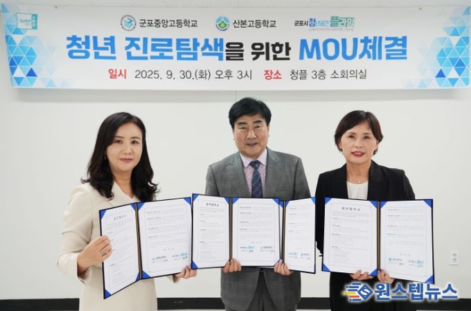 원스텝뉴스 이병희 기자 | 군포시 청년공간플라잉(센터장 조남)은 지난 9월 30일 군포중앙고(교장 이은경), 산본고(교장 김은정)와 함께 2025 창업스쿨 사업 관련 업무협약을 맺었다.