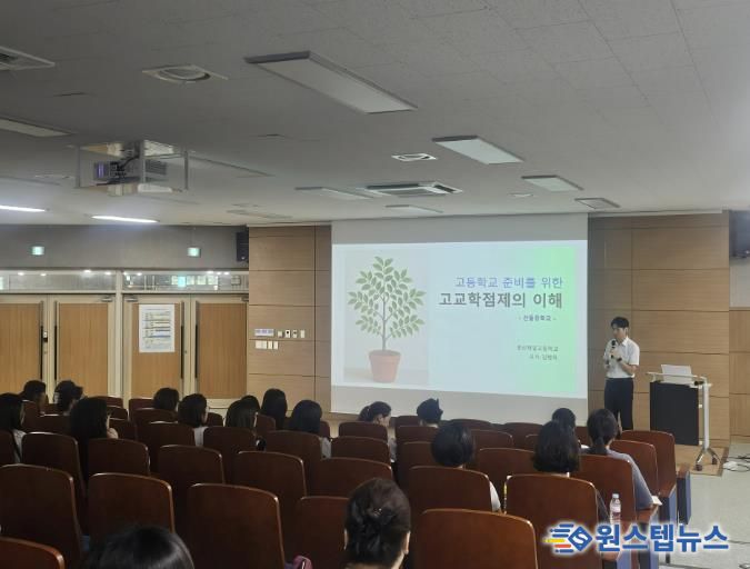 이번 연수 주요 내용은 ▲고교학점제 전반의 이해 ▲ 학점 이수 인정 기준 ▲최소 성취수준 보장지도의 이해 ▲ 변화하는 대입 제도 ▲ 슬기로운 고등학교 생활 준비하기 등으로 구성되어 각 중학교별 맞춤형 연수로 진행됐다.