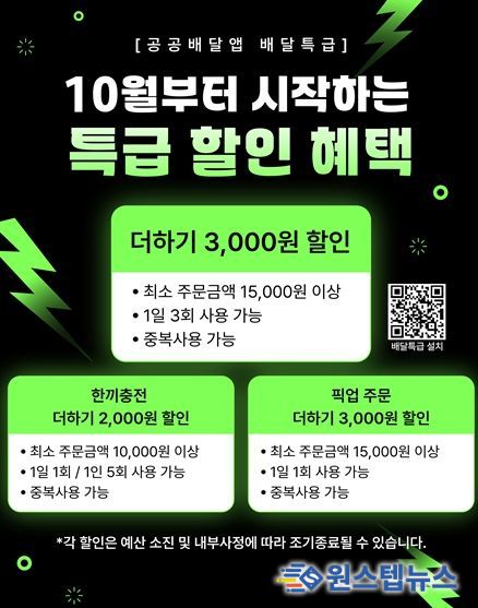 센터에 따르면 10월 할인 혜택은 ▲ 부천 특급찬스 더하기 3,000원 할인 쿠폰 ▲픽업 주문 지원 3,000원 할인 쿠폰 ▲ 한 끼 충전 더하기 2,000원 할인 쿠폰이 제공된다. 다른 쿠폰과 중복 사용이 가능한 더하기 쿠폰 제공을 통해 10월부터는 더욱 풍성한 할인 혜택을 제공하고 있다.